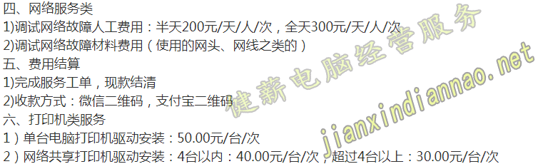 3)所有上门服务超过15公里的服务,收费标准在(收费标准明细)基础费用+30.00元/台/次